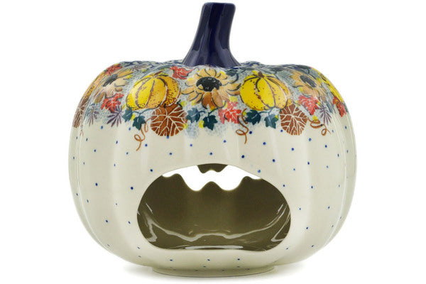Jack O Lantern Candle Holder 7" Autumn Falling Leaves Theme UNIKAT
