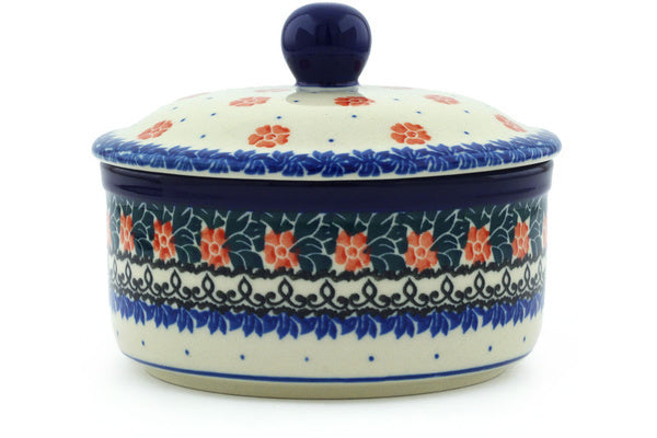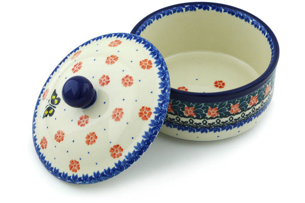 This Spring Butterfly 5" Jar with Lid was handmade and hand decorated in Boleslawiec, Poland by skilled artisans according to old traditional methods. This Polish stoneware is microwave, dishwasher, freezer, and oven safe up to 480°F. It does not contain lead or cadmium. It is part of the Spring Butterfly Collection.