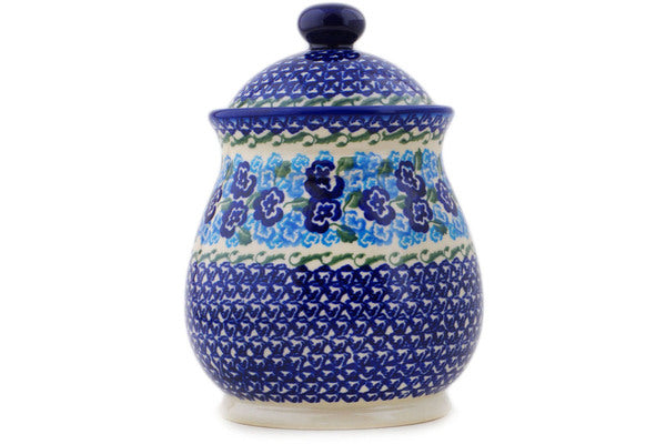 Jar with Lid 8" Blue Kiss Blooms Theme