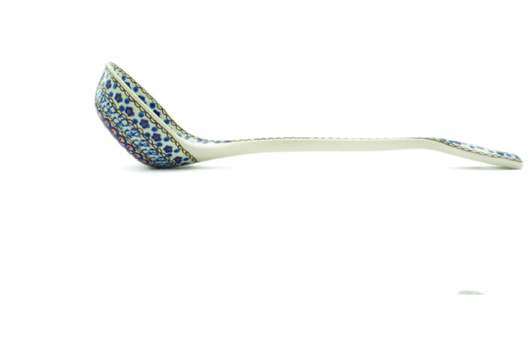 This Cobalt Poppies 13" Ladle was handmade and hand decorated in Boleslawiec, Poland by skilled artisans according to old traditional methods. This is a Polish pottery Signature Unikat, which means that it has been hand painted with both sponges and brushes and it is signed by the artist who painted it. Unikat pieces are the most intricate works of art. Larger Unikat items take hours of very careful work to finish. This Polish stoneware is microwave, dishwasher, freezer, and oven safe up to 480°F. It does not contain lead or cadmium. It is part of the Cobalt Poppies Collection.
