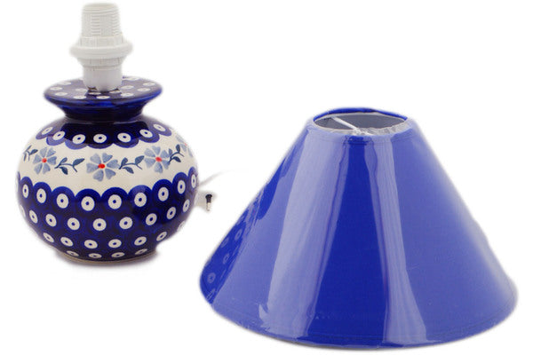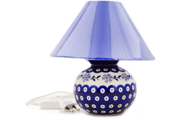 This Peacock Forget-Me-Not 9" Lamp was handmade and hand decorated in Boleslawiec, Poland by skilled artisans according to old traditional methods. This Polish stoneware is microwave, dishwasher, freezer, and oven safe up to 480°F. It does not contain lead or cadmium. It is part of the Peacock Forget-Me-Not Collection.