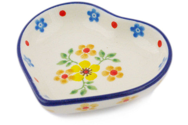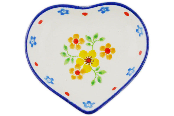 This Country Spring 3" Mini Heart Bowl was handmade and hand decorated in Boleslawiec, Poland by skilled artisans according to old traditional methods. This Polish stoneware is microwave, dishwasher, freezer, and oven safe up to 480°F. It does not contain lead or cadmium. It is part of the Country Spring Collection.