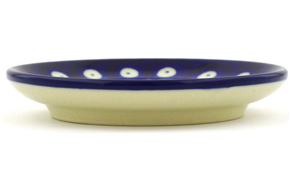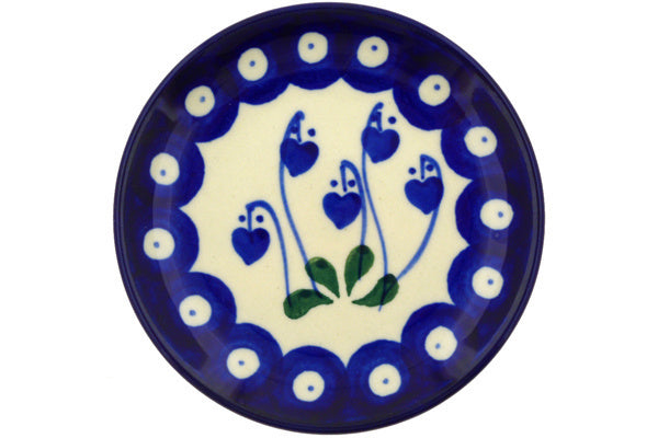 This Bleeding Heart Peacock 4" Mini Plate, Coaster plate was handmade and hand decorated in Boleslawiec, Poland by skilled artisans according to old traditional methods. This Polish stoneware is microwave, dishwasher, freezer, and oven safe up to 480°F. It does not contain lead or cadmium. It is part of the Bleeding Heart Peacock Collection.