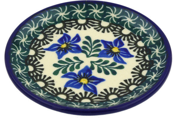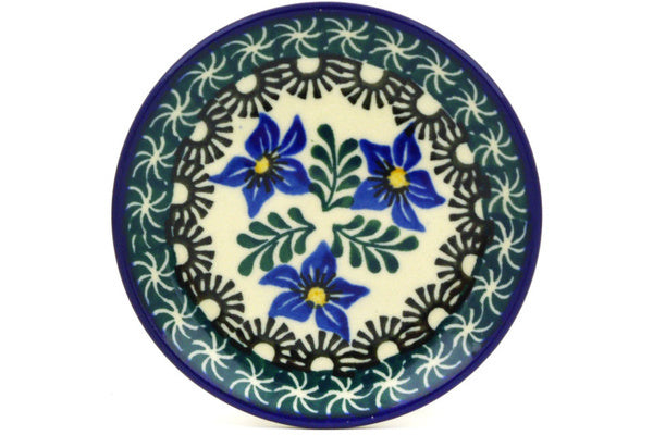 This Blue Violets 4" Mini Plate, Coaster plate was handmade and hand decorated in Boleslawiec, Poland by skilled artisans according to old traditional methods. This Polish stoneware is microwave, dishwasher, freezer, and oven safe up to 480°F. It does not contain lead or cadmium. It is part of the Blue Violets Collection.