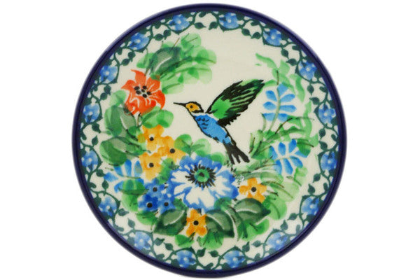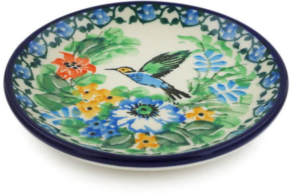 Mini Plate, Coaster plate 4" Hummingbird Meadow Theme UNIKAT
