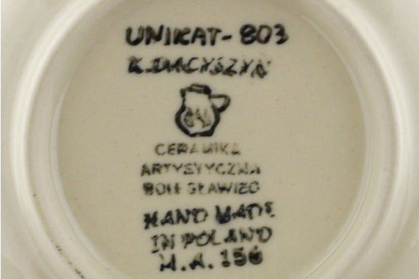This Prairie Land 4" Mini Plate, Coaster plate was handmade and hand decorated in Boleslawiec, Poland by skilled artisans according to old traditional methods. This is a Polish pottery Signature Unikat, which means that it has been hand painted with both sponges and brushes and it is signed by the artist who painted it. Unikat pieces are the most intricate works of art. Larger Unikat items take hours of very careful work to finish. This Polish stoneware is microwave, dishwasher, freezer, and oven safe up to 480°F. It does not contain lead or cadmium. It is part of the Prairie Land Collection.