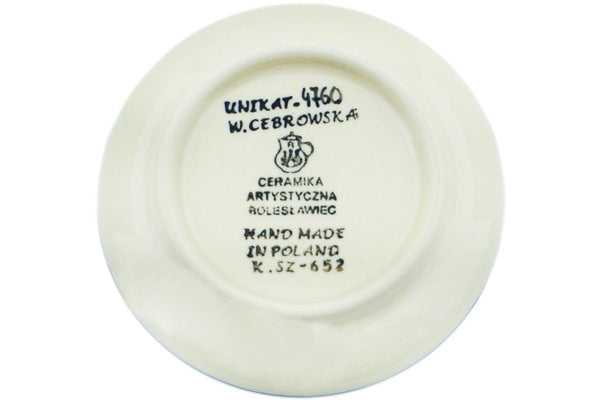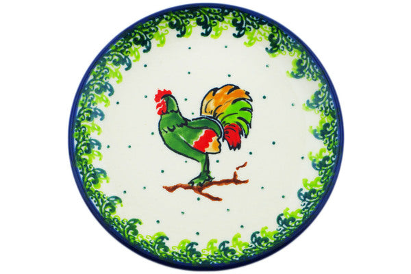 This Rooster's Crow 4" Mini Plate, Coaster plate was handmade and hand decorated in Boleslawiec, Poland by skilled artisans according to old traditional methods. This is a Polish pottery Signature Unikat, which means that it has been hand painted with both sponges and brushes and it is signed by the artist who painted it. Unikat pieces are the most intricate works of art. Larger Unikat items take hours of very careful work to finish. This Polish stoneware is microwave, dishwasher, freezer, and oven safe up to 480°F. It does not contain lead or cadmium. It is part of the Rooster's Crow Collection.