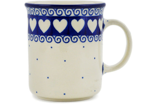 This Light Hearted 10 oz Mug was handmade and hand decorated in Boleslawiec, Poland by skilled artisans according to old traditional methods. This Polish stoneware is microwave, dishwasher, freezer, and oven safe up to 480°F. It does not contain lead or cadmium. It is part of the Light Hearted Collection.