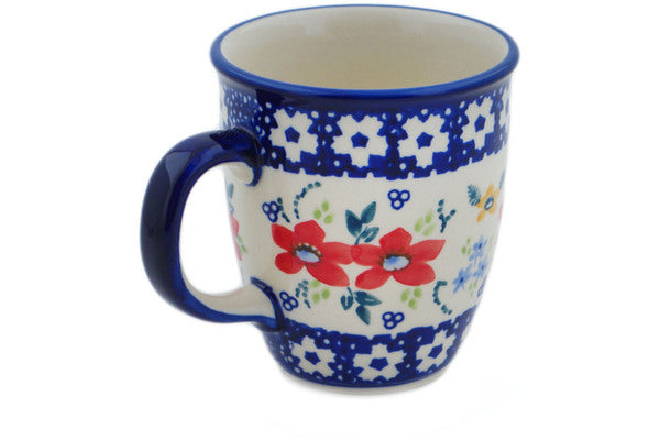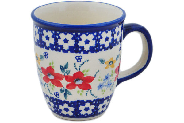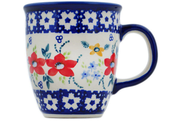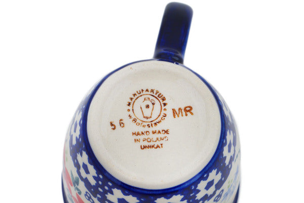 This Wild Flower Bloom 10 oz Mug was handmade and hand decorated in Boleslawiec, Poland by skilled artisans according to old traditional methods. This is a Polish pottery Signature Unikat, which means that it has been hand painted with both sponges and brushes and it is signed by the artist who painted it. Unikat pieces are the most intricate works of art. Larger Unikat items take hours of very careful work to finish. This Polish stoneware is microwave, dishwasher, freezer, and oven safe up to 480°F. It does not contain lead or cadmium. It is part of the Wild Flower Bloom Collection.