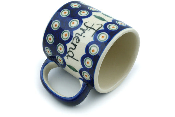This Przyjaciel Friend 13 oz Mug was handmade and hand decorated in Boleslawiec, Poland by skilled artisans according to old traditional methods. This Polish stoneware is microwave, dishwasher, freezer, and oven safe up to 480°F. It does not contain lead or cadmium. It is part of the Przyjaciel Friend Collection.