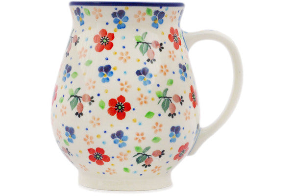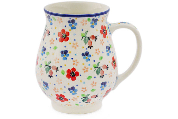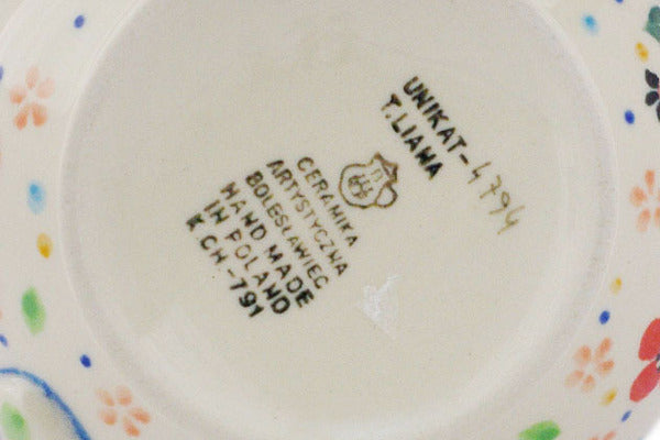 This Spring Meadow 17 oz Mug was handmade and hand decorated in Boleslawiec, Poland by skilled artisans according to old traditional methods. This is a Polish pottery Signature Unikat, which means that it has been hand painted with both sponges and brushes and it is signed by the artist who painted it. Unikat pieces are the most intricate works of art. Larger Unikat items take hours of very careful work to finish. This Polish stoneware is microwave, dishwasher, freezer, and oven safe up to 480°F. It does not contain lead or cadmium. It is part of the Spring Meadow Collection.