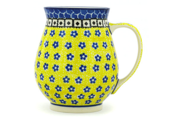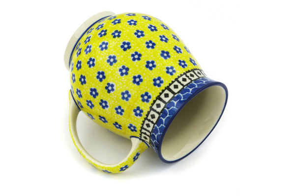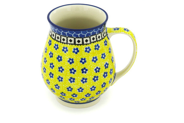 This Sunburst Daisies 17 oz Mug was handmade and hand decorated in Boleslawiec, Poland by skilled artisans according to old traditional methods. This Polish stoneware is microwave, dishwasher, freezer, and oven safe up to 480°F. It does not contain lead or cadmium. It is part of the Sunburst Daisies Collection.