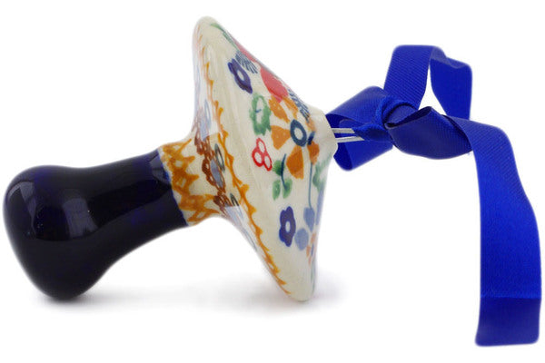 This Summer Bouquet 3" Mushroom Ornament was handmade and hand decorated in Boleslawiec, Poland by skilled artisans according to old traditional methods. This is a Polish pottery Signature Unikat, which means that it has been hand painted with both sponges and brushes and it is signed by the artist who painted it. Unikat pieces are the most intricate works of art. Larger Unikat items take hours of very careful work to finish. This Polish stoneware is microwave, dishwasher, freezer, and oven safe up to 480°F. It does not contain lead or cadmium. It is part of the Summer Bouquet Collection.