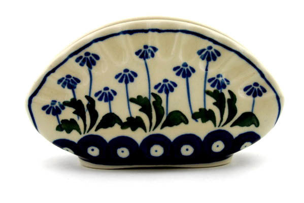 This Blue Daisy Peacock 5" Napkin Holder was handmade and hand decorated in Boleslawiec, Poland by skilled artisans according to old traditional methods. This Polish stoneware is microwave, dishwasher, freezer, and oven safe up to 480°F. It does not contain lead or cadmium. It is part of the Blue Daisy Peacock Collection.