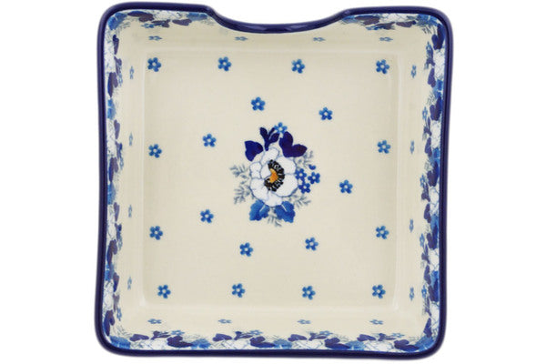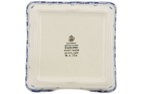 This Blue Spring 6" Napkin Holder was handmade and hand decorated in Boleslawiec, Poland by skilled artisans according to old traditional methods. This Polish stoneware is microwave, dishwasher, freezer, and oven safe up to 480°F. It does not contain lead or cadmium. It is part of the Blue Spring Collection.