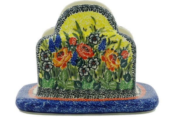 This Splendid Morning Glow 7" Napkin Holder was handmade and hand decorated in Boleslawiec, Poland by skilled artisans according to old traditional methods. This is a Polish pottery Signature Unikat, which means that it has been hand painted with both sponges and brushes and it is signed by the artist who painted it. Unikat pieces are the most intricate works of art. Larger Unikat items take hours of very careful work to finish. This Polish stoneware is microwave, dishwasher, freezer, and oven safe up to 480°F. It does not contain lead or cadmium. It is part of the Splendid Morning Glow Collection.