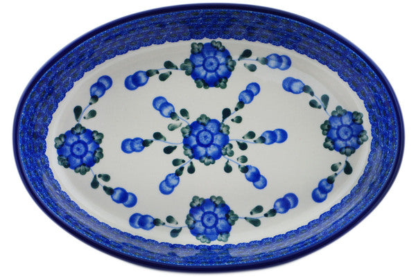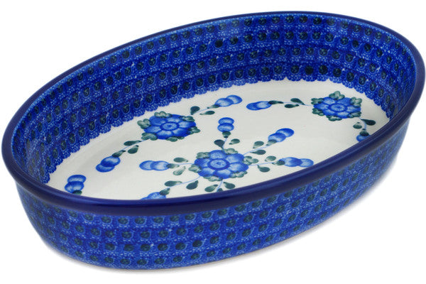 Oval Baker 11" Blue Poppies Theme