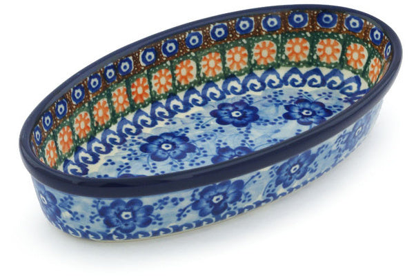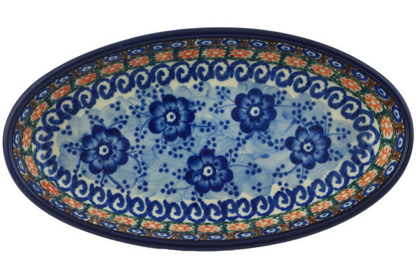 Oval Baker 8" Dancing Blue Poppies Theme UNIKAT