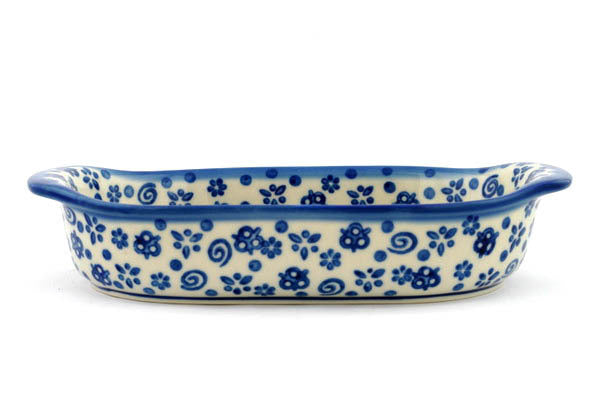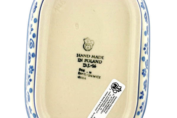 This Blue Confetti 8" Oval Baker with Handles was handmade and hand decorated in Boleslawiec, Poland by skilled artisans according to old traditional methods. This Polish stoneware is microwave, dishwasher, freezer, and oven safe up to 480°F. It does not contain lead or cadmium. It is part of the Blue Confetti Collection.