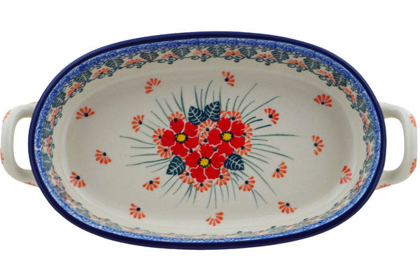 Oval Baker with Handles 8-inch Pink Forget Me Not Theme UNIKAT