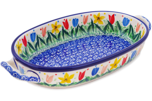 Oval Baker with Handles 8-inch Summer Tulip Theme UNIKAT