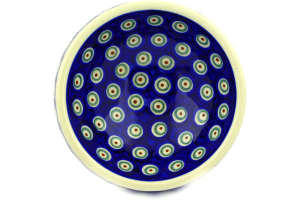 This Peacock Leaves 6" Pet Bowl was handmade and hand decorated in Boleslawiec, Poland by skilled artisans according to old traditional methods. This Polish stoneware is microwave, dishwasher, freezer, and oven safe up to 480°F. It does not contain lead or cadmium. It is part of the Peacock Leaves Collection.