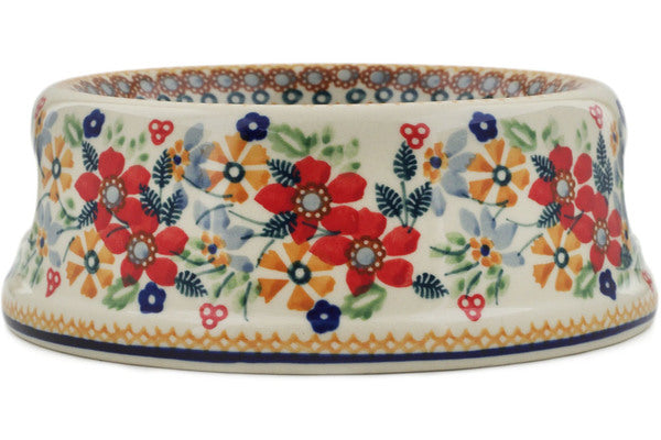 This Summer Bouquet 6" Pet Bowl was handmade and hand decorated in Boleslawiec, Poland by skilled artisans according to old traditional methods. This is a Polish pottery Signature Unikat, which means that it has been hand painted with both sponges and brushes and it is signed by the artist who painted it. Unikat pieces are the most intricate works of art. Larger Unikat items take hours of very careful work to finish. This Polish stoneware is microwave, dishwasher, freezer, and oven safe up to 480°F. It does not contain lead or cadmium. It is part of the Summer Bouquet Collection.