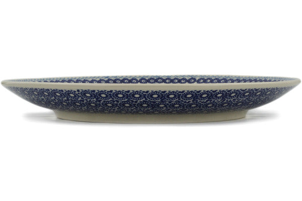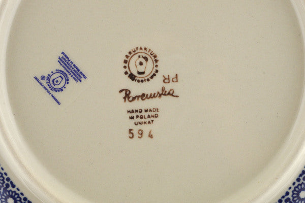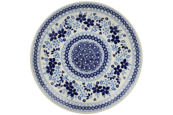This Blue Frost 10" Plate was handmade and hand decorated in Boleslawiec, Poland by skilled artisans according to old traditional methods. This is a Polish pottery Signature Unikat, which means that it has been hand painted with both sponges and brushes and it is signed by the artist who painted it. Unikat pieces are the most intricate works of art. Larger Unikat items take hours of very careful work to finish. This Polish stoneware is microwave, dishwasher, freezer, and oven safe up to 480°F. It does not contain lead or cadmium. It is part of the Blue Frost Collection.