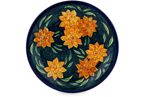 This Midnight Splendor 11" Plate was handmade and hand decorated in Boleslawiec, Poland by skilled artisans according to old traditional methods. This is a Polish pottery Signature Unikat, which means that it has been hand painted with both sponges and brushes and it is signed by the artist who painted it. Unikat pieces are the most intricate works of art. Larger Unikat items take hours of very careful work to finish. This Polish stoneware is microwave, dishwasher, freezer, and oven safe up to 480°F. It does not contain lead or cadmium. It is part of the Midnight Splendor Collection.