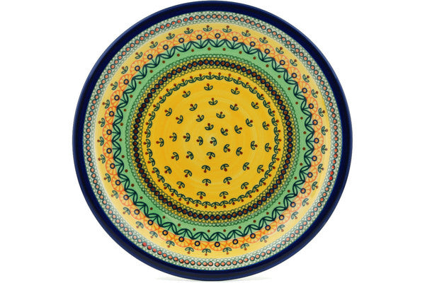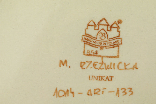 This Prairie Sunrise 11" Plate was handmade and hand decorated in Boleslawiec, Poland by skilled artisans according to old traditional methods. This is a Polish pottery Signature Unikat, which means that it has been hand painted with both sponges and brushes and it is signed by the artist who painted it. Unikat pieces are the most intricate works of art. Larger Unikat items take hours of very careful work to finish. This Polish stoneware is microwave, dishwasher, freezer, and oven safe up to 480°F. It does not contain lead or cadmium. It is part of the Prairie Sunrise Collection.