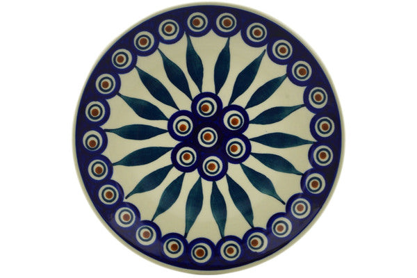 This Peacock 7" Plate was handmade and hand decorated in Boleslawiec, Poland by skilled artisans according to old traditional methods. This Polish stoneware is microwave, dishwasher, freezer, and oven safe up to 480°F. It does not contain lead or cadmium. It is part of the Peacock Collection.