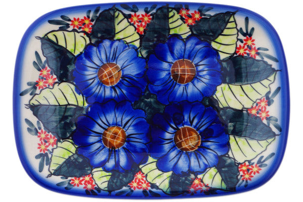 This Blue Bouquet 10" Platter was handmade and hand decorated in Boleslawiec, Poland by skilled artisans according to old traditional methods. This is a Polish pottery Signature Unikat, which means that it has been hand painted with both sponges and brushes and it is signed by the artist who painted it. Unikat pieces are the most intricate works of art. Larger Unikat items take hours of very careful work to finish. This Polish stoneware is microwave, dishwasher, freezer, and oven safe up to 480°F. It does not contain lead or cadmium. It is part of the Blue Bouquet Collection.