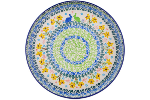 This Hopping In Love 10" Platter was handmade and hand decorated in Boleslawiec, Poland by skilled artisans according to old traditional methods. This Polish stoneware is microwave, dishwasher, freezer, and oven safe up to 480°F. It does not contain lead or cadmium. It is part of the Hopping In Love Collection.