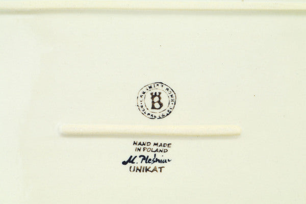 This Stormy Vines 10" Platter was handmade and hand decorated in Boleslawiec, Poland by skilled artisans according to old traditional methods. This is a Polish pottery Signature Unikat, which means that it has been hand painted with both sponges and brushes and it is signed by the artist who painted it. Unikat pieces are the most intricate works of art. Larger Unikat items take hours of very careful work to finish. This Polish stoneware is microwave, dishwasher, freezer, and oven safe up to 480°F. It does not contain lead or cadmium. It is part of the Stormy Vines Collection.