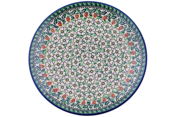 This Strawberries And Cream 14" Platter was handmade and hand decorated in Boleslawiec, Poland by skilled artisans according to old traditional methods. This is a Polish pottery Signature Unikat, which means that it has been hand painted with both sponges and brushes and it is signed by the artist who painted it. Unikat pieces are the most intricate works of art. Larger Unikat items take hours of very careful work to finish. This Polish stoneware is microwave, dishwasher, freezer, and oven safe up to 480°F. It does not contain lead or cadmium. It is part of the Strawberries And Cream Collection.
