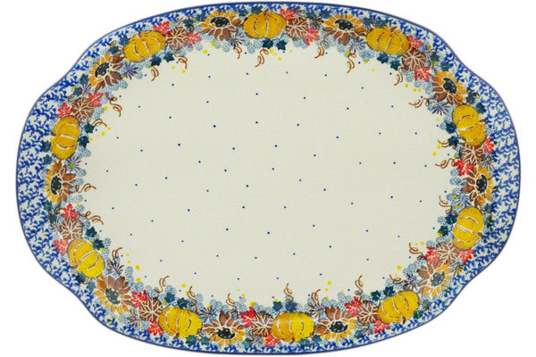 Platter 15" Autumn Falling Leaves Theme UNIKAT