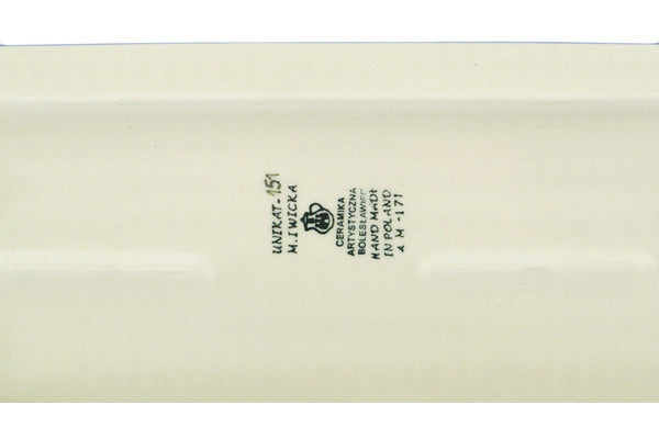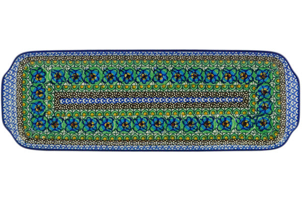 This Mardi Gras 16" Platter with Handles was handmade and hand decorated in Boleslawiec, Poland by skilled artisans according to old traditional methods. This is a Polish pottery Signature Unikat, which means that it has been hand painted with both sponges and brushes and it is signed by the artist who painted it. Unikat pieces are the most intricate works of art. Larger Unikat items take hours of very careful work to finish. This Polish stoneware is microwave, dishwasher, freezer, and oven safe up to 480°F. It does not contain lead or cadmium. It is part of the Mardi Gras Collection.
