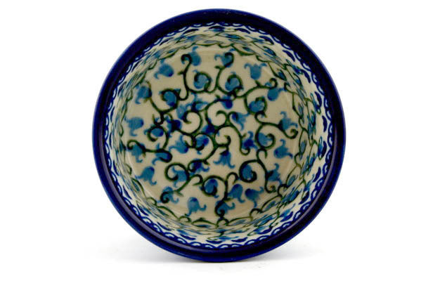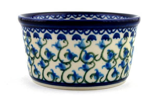 This Blue Bell Vine Small Ramekin Bowl was handmade and hand decorated in Boleslawiec, Poland by skilled artisans according to old traditional methods. This Polish stoneware is microwave, dishwasher, freezer, and oven safe up to 480°F. It does not contain lead or cadmium. It is part of the Blue Bell Vine Collection.