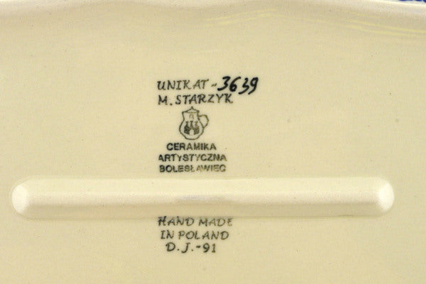 This Deep Winter 11" Rectangular Baker was handmade and hand decorated in Boleslawiec, Poland by skilled artisans according to old traditional methods. This is a Polish pottery Signature Unikat, which means that it has been hand painted with both sponges and brushes and it is signed by the artist who painted it. Unikat pieces are the most intricate works of art. Larger Unikat items take hours of very careful work to finish. This Polish stoneware is microwave, dishwasher, freezer, and oven safe up to 480°F. It does not contain lead or cadmium. It is part of the Deep Winter Collection.