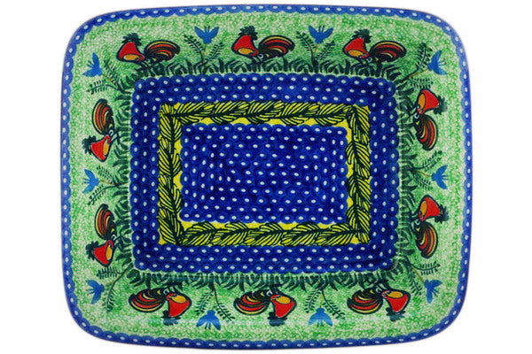 Rectangular Baker 11" Rooster Parade Theme UNIKAT