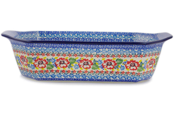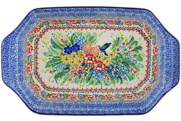 Rectangular Baker with Handles 14" Hummingbird Meadow Theme UNIKAT
