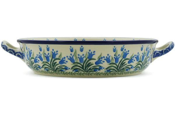 Round Baker with Handles 11" Feathery Bluebells Theme