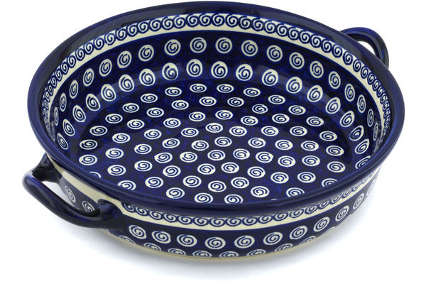 Round Baker with Handles 13" Cobalt Swirl Theme