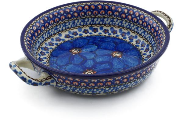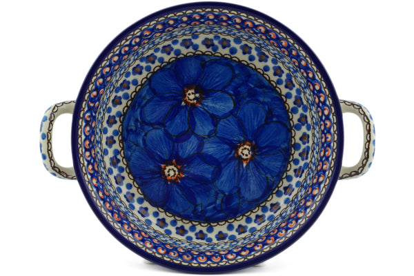 Round Baker with Handles 6½-inch Cobalt Poppies Theme UNIKAT