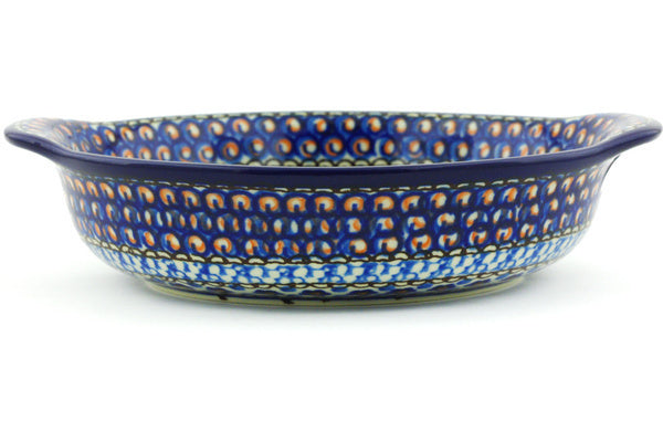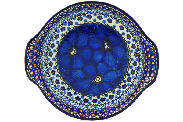 Round Baker with Handles 7" Cobalt Poppies Theme UNIKAT