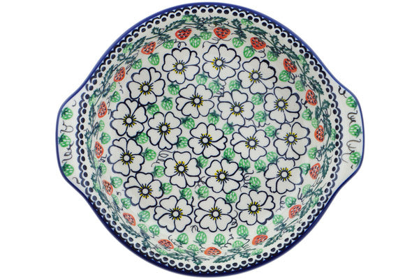 Round Baker with Handles 9" Strawberries And Cream Theme UNIKAT
