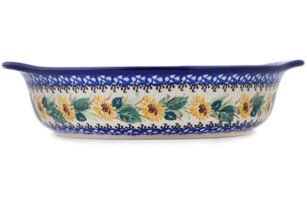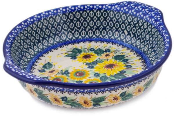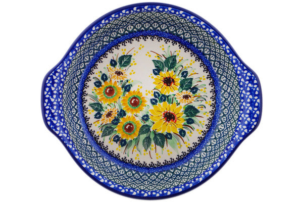 Round Baker with Handles 9" Sunflowers At Sunset Theme UNIKAT