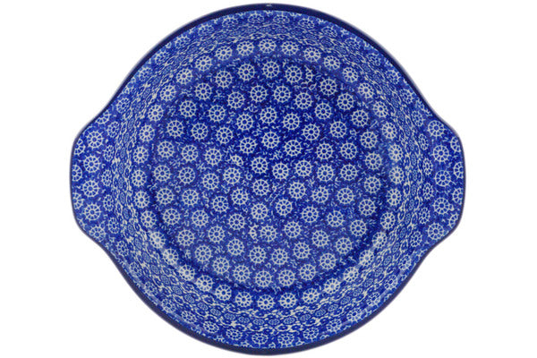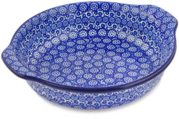 This Wagon Wheel 9" Round Baker with Handles was handmade and hand decorated in Boleslawiec, Poland by skilled artisans according to old traditional methods. This Polish stoneware is microwave, dishwasher, freezer, and oven safe up to 480°F. It does not contain lead or cadmium. It is part of the Wagon Wheel Collection.