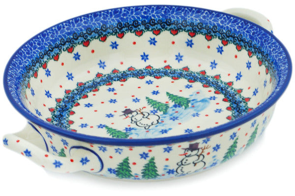 Round Baker with Handles Medium Dancing Snowman Theme UNIKAT