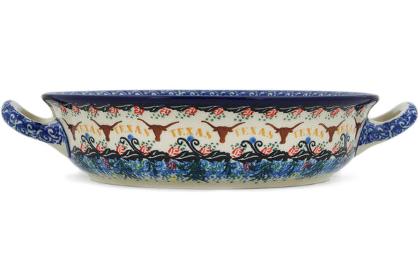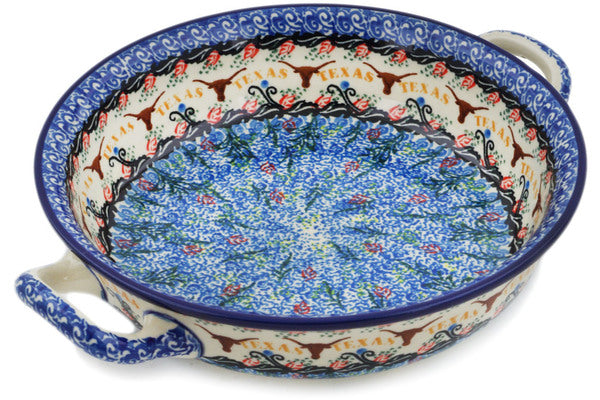 Round Baker with Handles Medium Texas Feast Theme UNIKAT